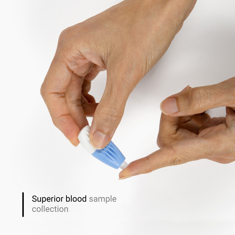 Easily collect your blood sample with our user-friendly kit right from the comfort of your home.
